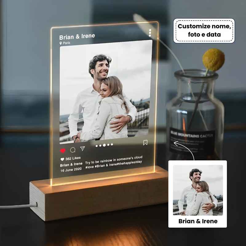 Uma luminária com uma foto do casal traz um toque pessoal e único ao presente. Isso demonstra que você pensou e se esforçou para criar algo especial e exclusivo para o seu relacionamento.